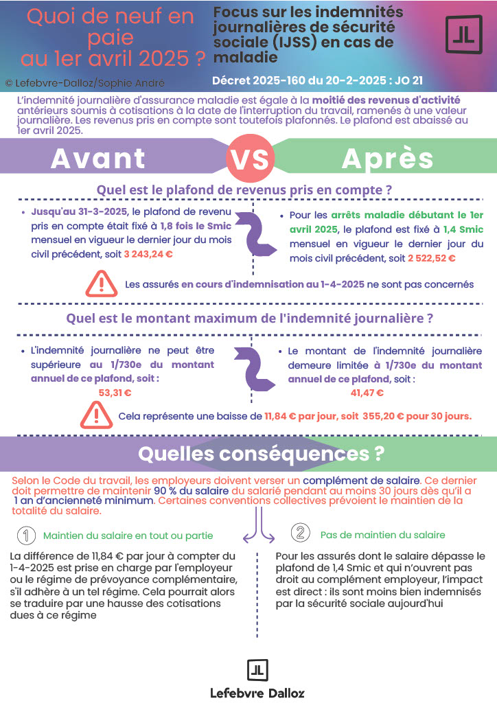 Nous rappelons dans cette infographie les nouvelles mesures applicables depuis le 1er avril 2025 en matière de versement d’indemnités journalières de sécurité sociale.